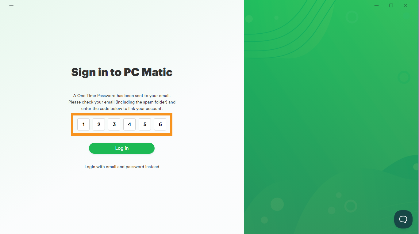 Follow the steps below to receive a one-time password to login to PC Matic: