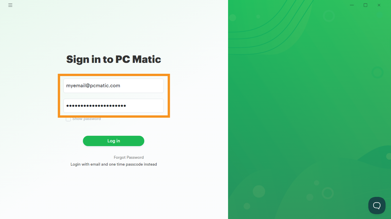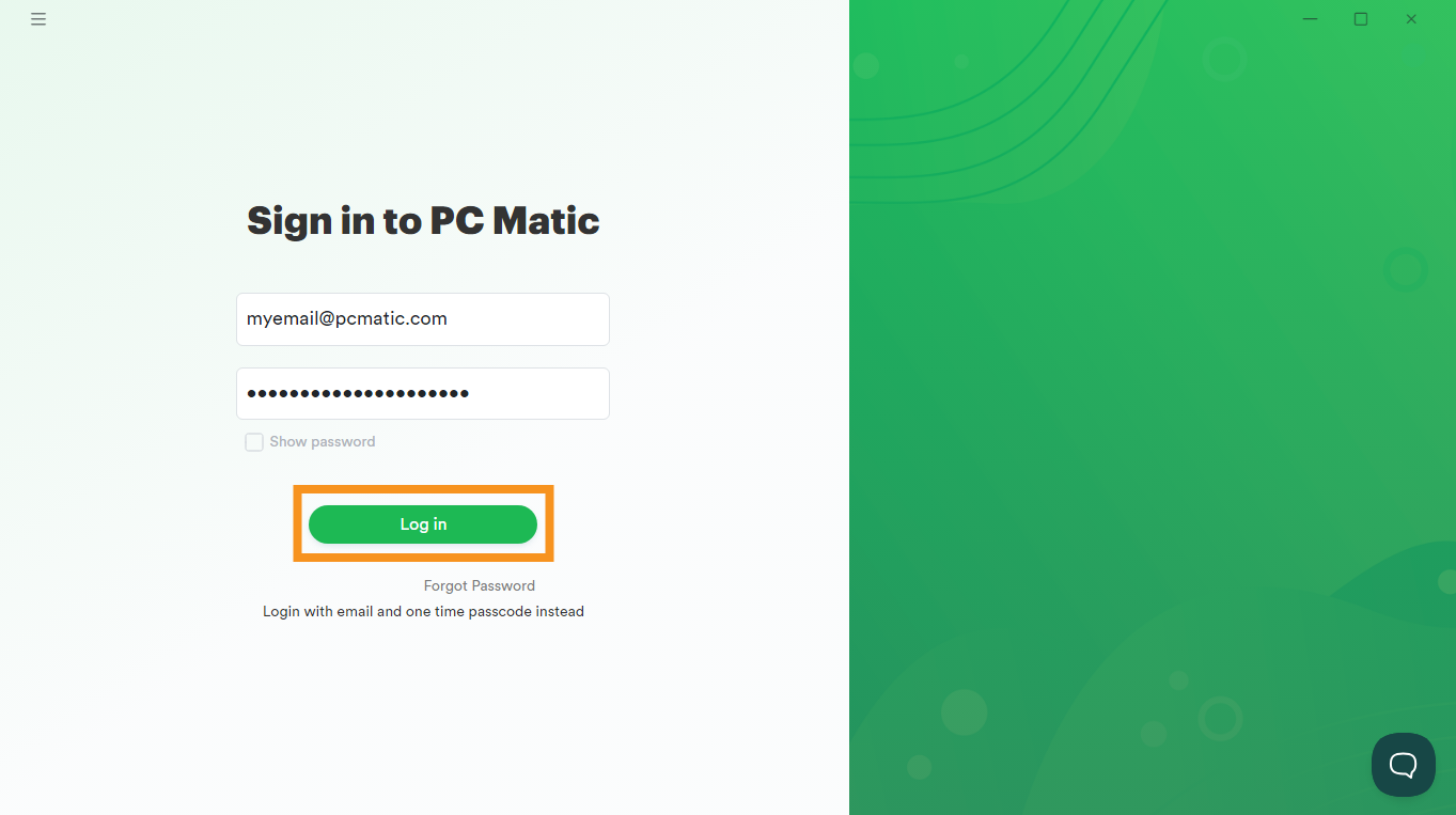 Follow the steps below to use your email and existing password to login to PC Matic: