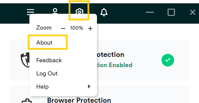 1. You will want to ensure you have the latest version of the PC Matic software. To do this, open PC Matic, and click the gear shaped Settings icon. When the Settings menu opens, click on About.