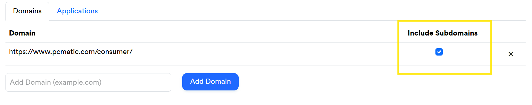 - Open the Settings page back up and ensure the Domains tab is clicked under the Split Tunneling setting. Paste the website URL you just copied into the blank space provided. Then click Add Domain.