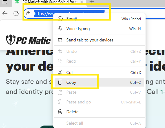 Leave the settings window open, and navigate to the website you are having trouble with. Highlight and copy the website URL in the address bar at the top of the webpage.